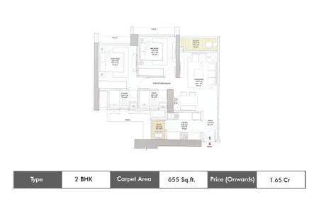2 BHK | 545 Sq.Ft. | 1.39 Cr* Onwards | |